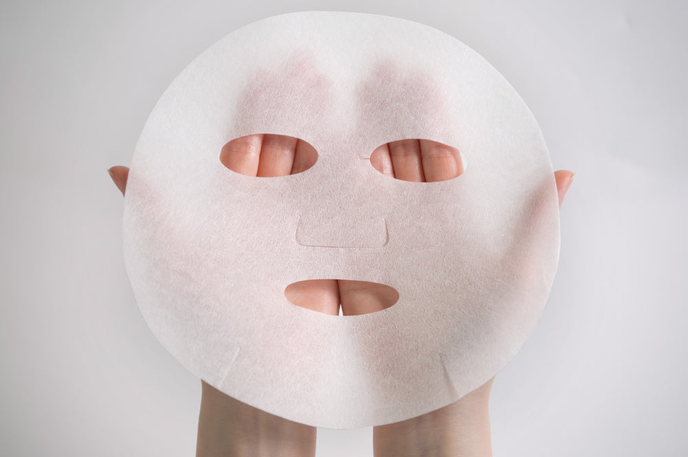 水分を含むと密着する性質があり、顔の輪郭に沿ってぴったりついてはがれずらい。スキンケア中の移動もOK